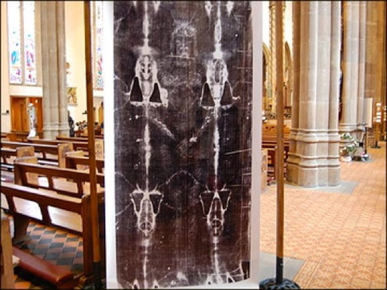 This exhibition, featuring life-sized photographic replicas of the Shroud of Turin was created in 2008, using the 1978 photographs of Barrie Schwortz (www.shroud.com). It aims to use the replica of the Shroud as a visual aid to tell the story of the crucifixion of Jesus Christ and to examine the mystery of the cloth. The exhibition takes the journey of Jesus from his trial through the events of Good Friday to the empty tomb, using passages from the four gospels. It tries to demonstrate what the flogging, the whip; the piercings, the nails and spear were really like, using the Shroud as a teaching aid.